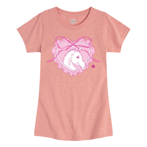 LACE HEART HORSE - Kids GIRLS FITTED SHORT SLEEVE TEE